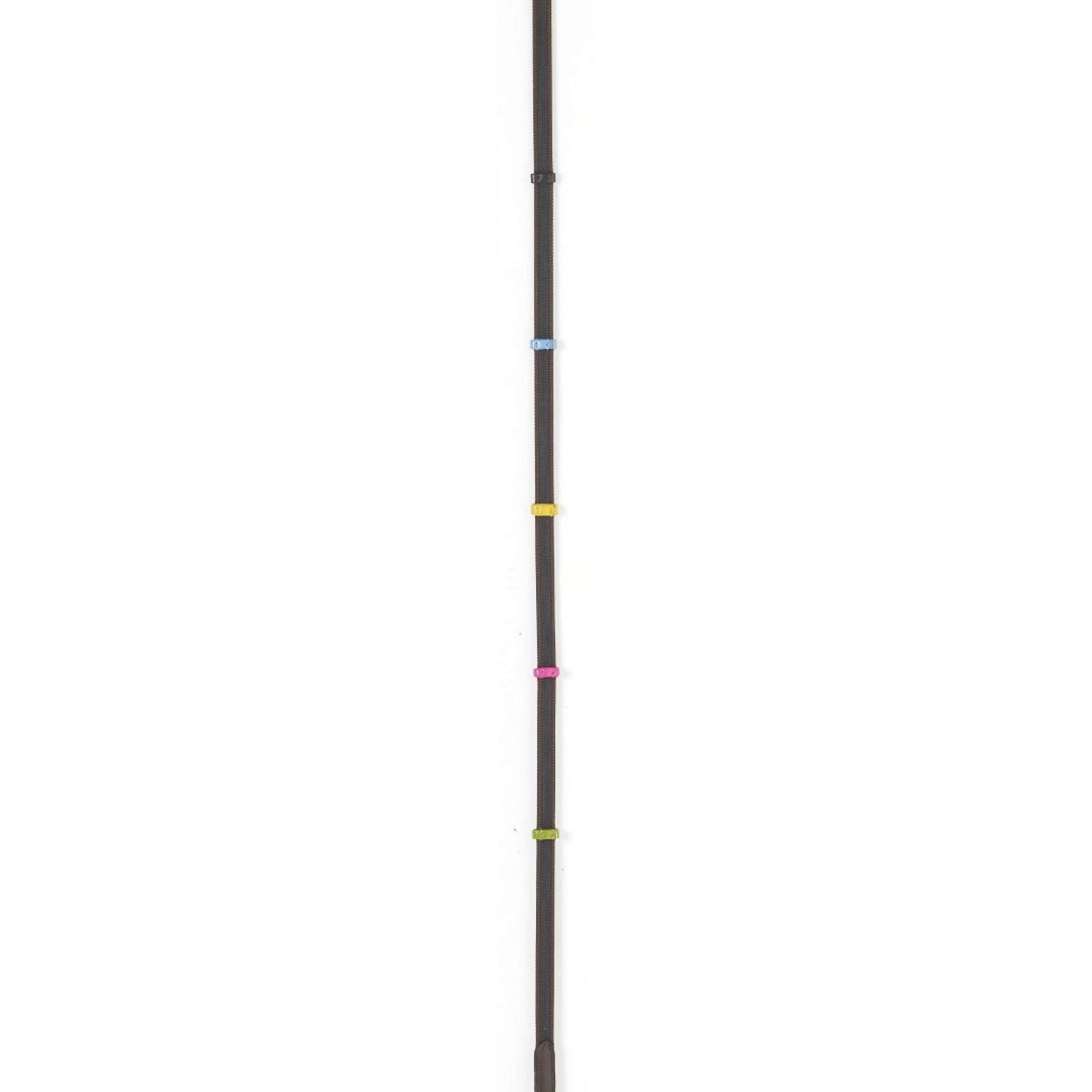 Rênes antidérapantes en caoutchouc marron avec arrêtoirs en cuir coloré